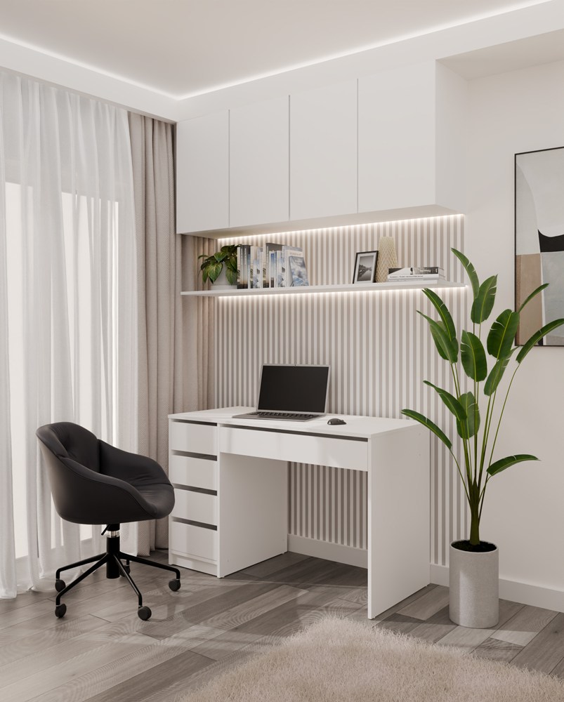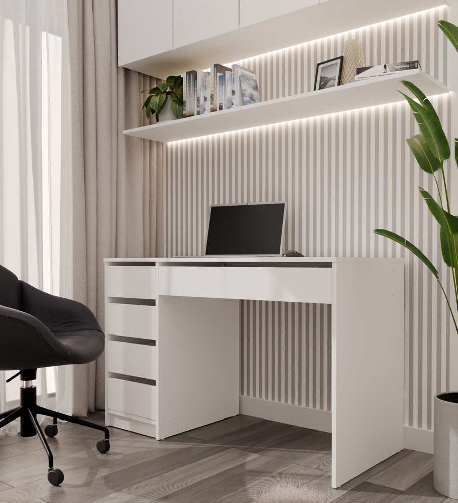 Biurko ARTO BIAŁE 120 CM 5 Szuflad Szafka Nowoczesne Do Pracy Domu Biura