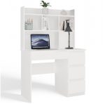 Biurko MIJAS Prawe z Nadstawką Biel Mat 4 Szuflady 4 Półki Do Biura Pokoju