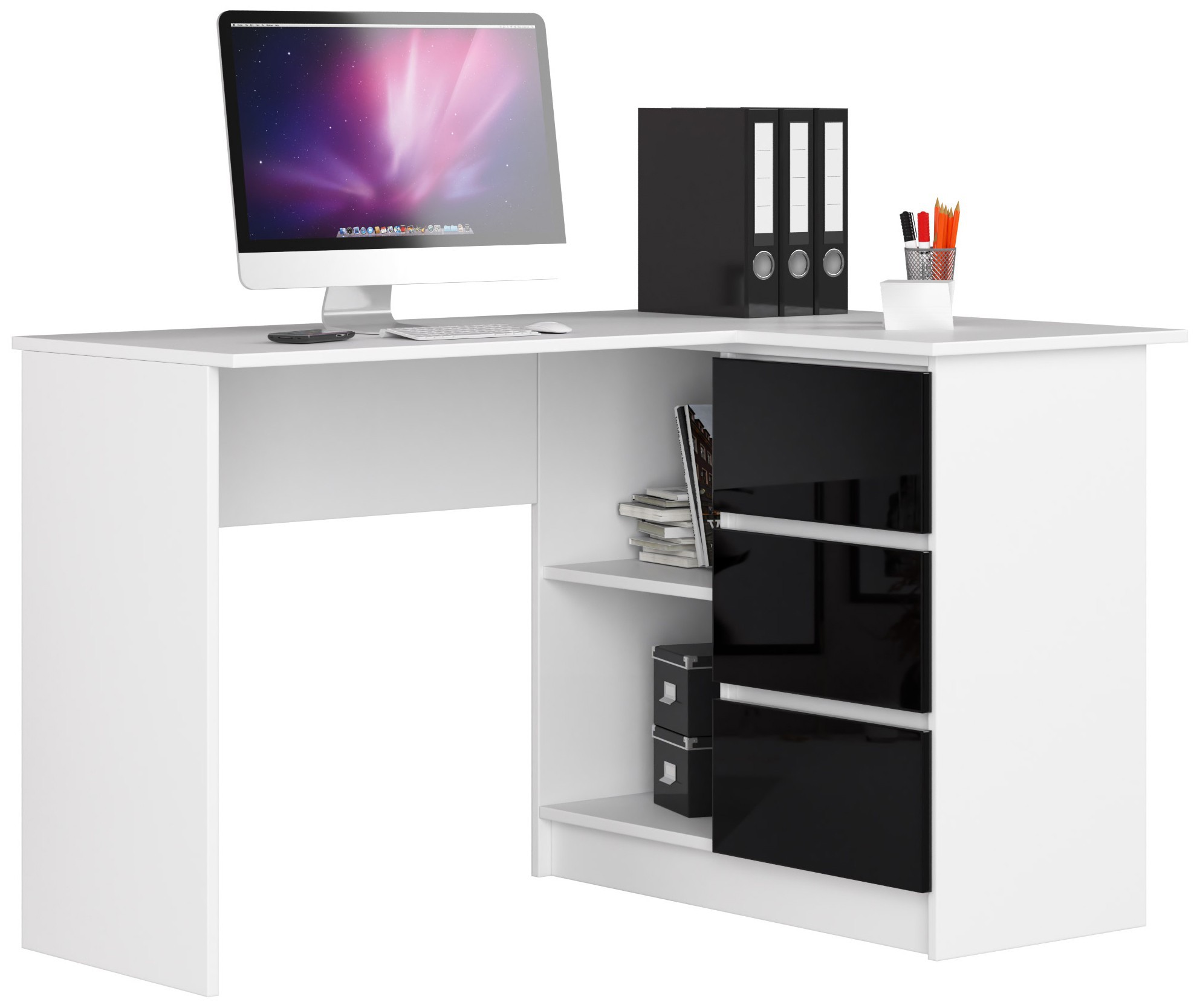 BIURKO NAROŻNE B16 124 cm PRAWE 3 SZUFLADY PK BIAŁE / CZARNY POŁYSK