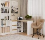 Nowoczesne biurko narożne w kolorze białym to idealne rozwiązanie do pracy i nauki w domowym biurze. Minimalistyczna forma świetnie wpisuje się w różne aranżacje, a przemyślany układ zapewnia wygodę użytkowania.