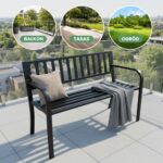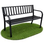 Czarna ławka ogrodowa LINEA ze stalowymi nogami i oparciem szerokość 119 cm
