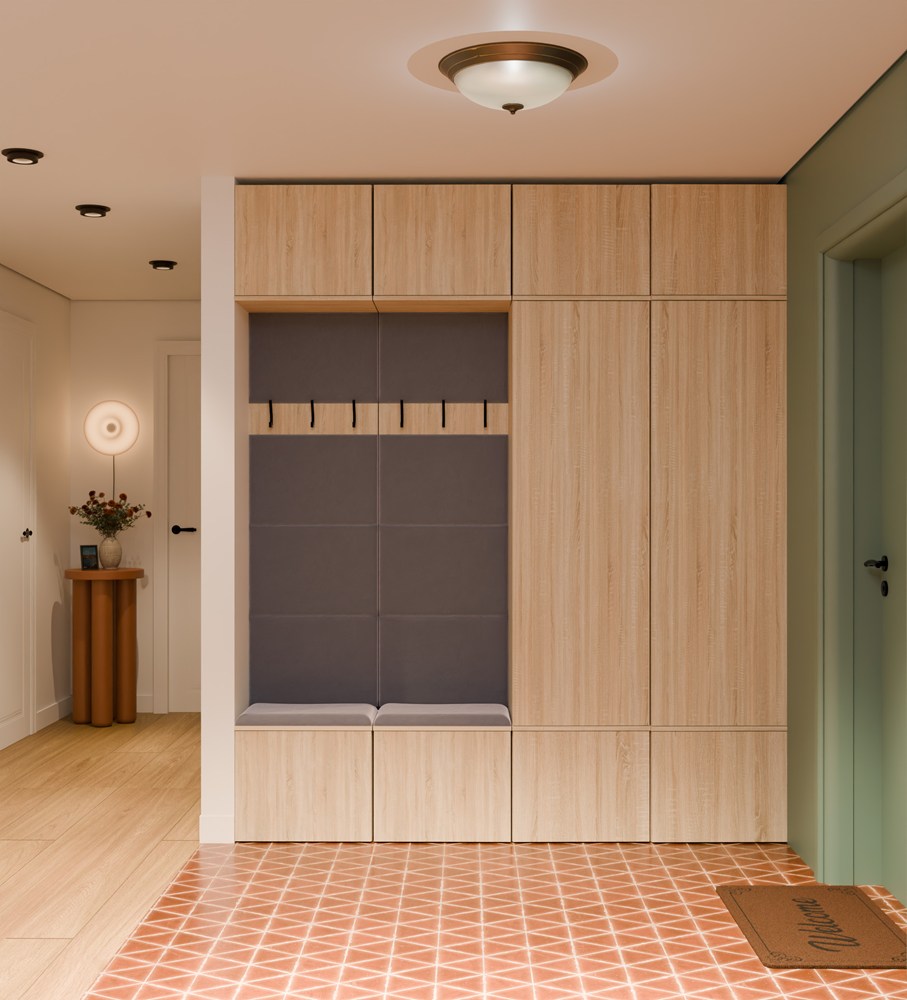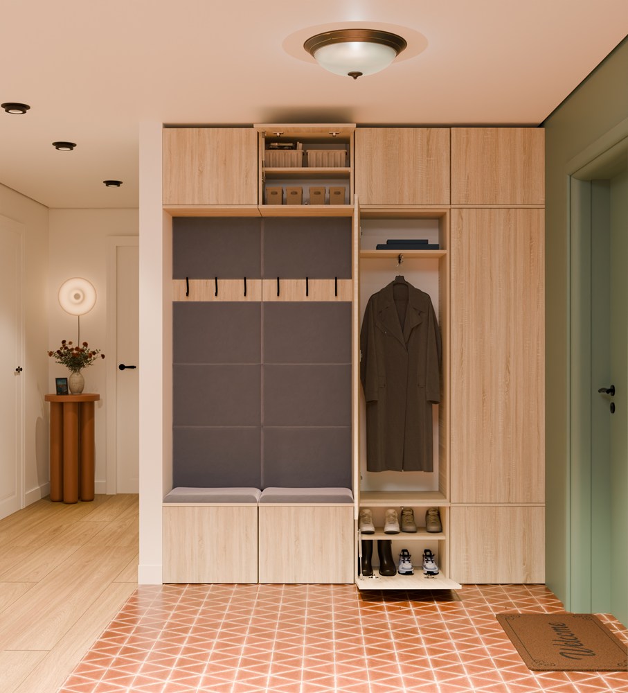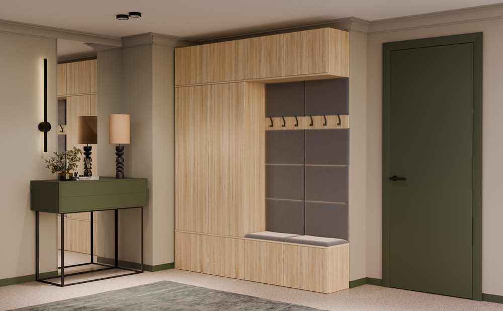 Dzięki przemyślanej, modułowej konstrukcji, każdy z elementów można swobodnie zestawiać, a całość tworzy elegancką i praktyczną przestrzeń wejściową – idealną zarówno do mieszkań, jak i domów jednorodzinnych.