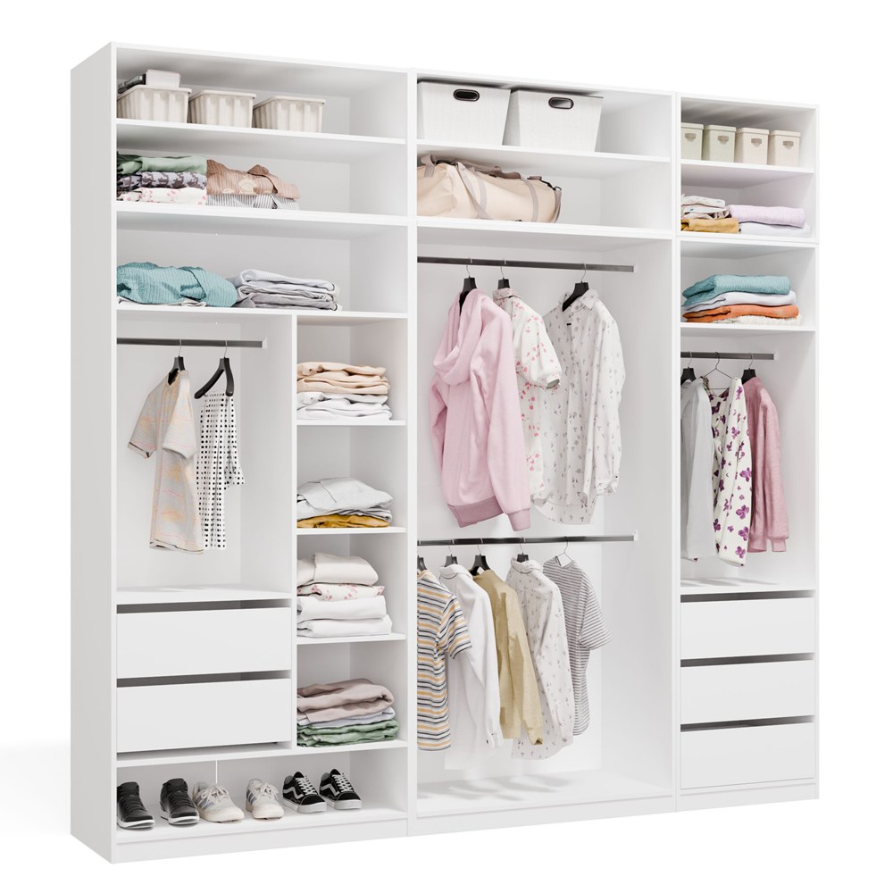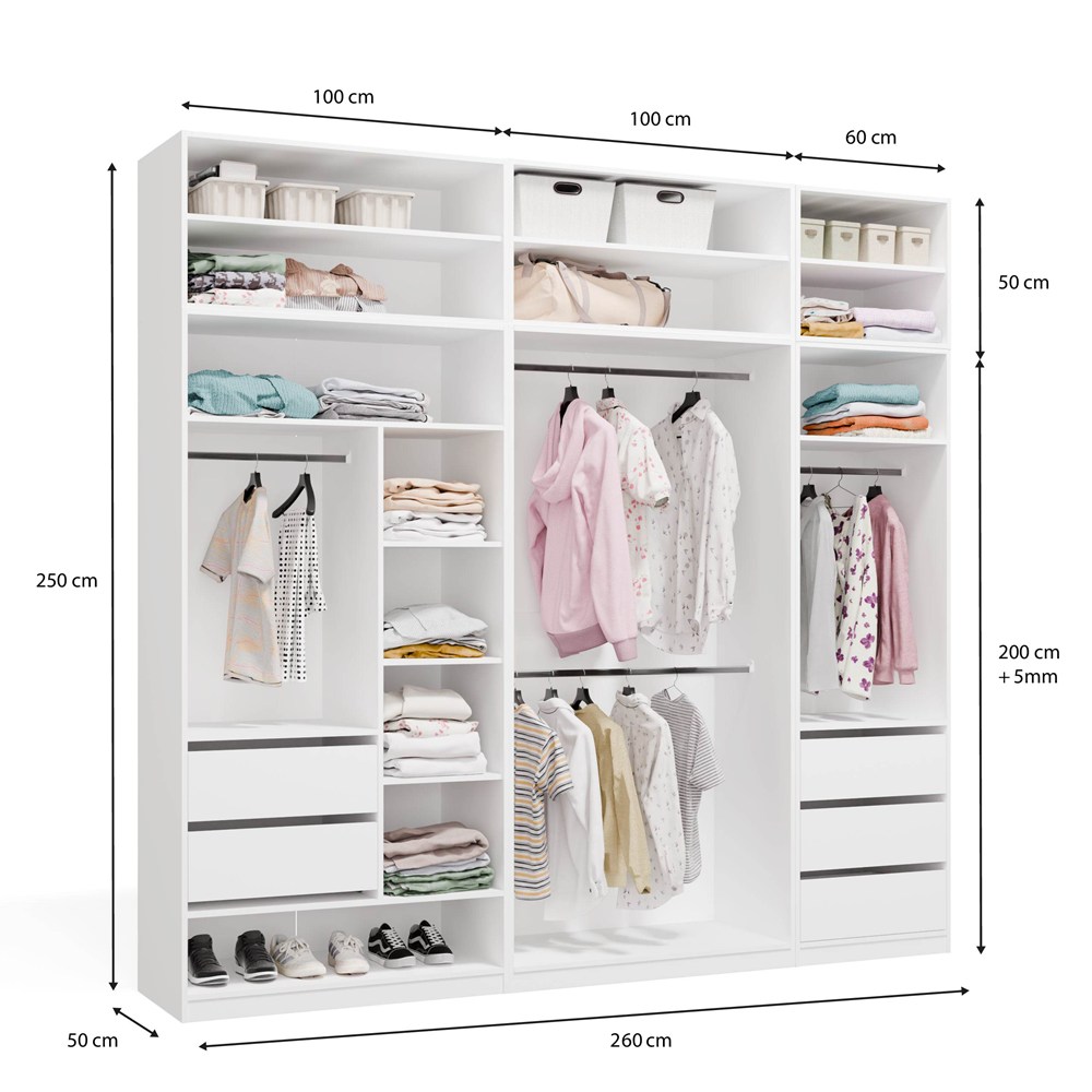 Garderoba Modułowa OPENO ZESTAW 260/250 BIAŁA Szuflady Drążki Półki Duża Do Sypialni