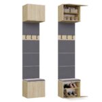 Zamiast klasycznej zabudowanej szafy, model ten wyposażono w otwarty wieszak z haczykami, który pozwala na szybki dostęp do kurtek, toreb czy plecaków. Dzięki temu mebel sprawdzi się zarówno w małych wnętrzach, jak i w przestronnych holach, gdzie liczy się funkcjonalność i optyczna lekkość.