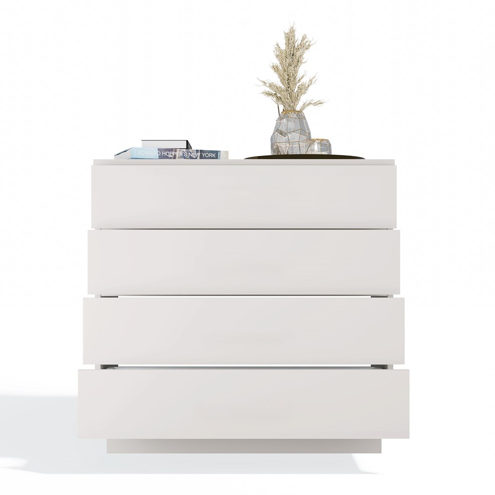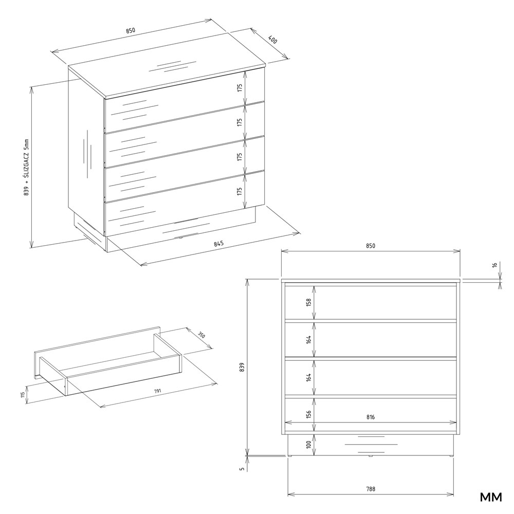 Nowoczesna komoda z serii AMBER to stylowe i funkcjonalne rozwiązanie do każdego wnętrza. Dzięki kompaktowym wymiarom idealnie sprawdzi się w sypialni, salonie, przedpokoju lub pokoju młodzieżowym. Wyposażona została w 4 pojemne szuflady, które ułatwią przechowywanie odzieży, dokumentów i drobnych akcesoriów.