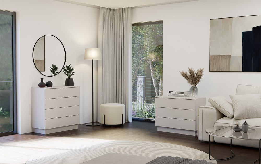 Minimalistyczna forma, matowe wykończenie oraz starannie dobrana kolorystyka sprawiają, że mebel świetnie komponuje się z różnymi aranżacjami.