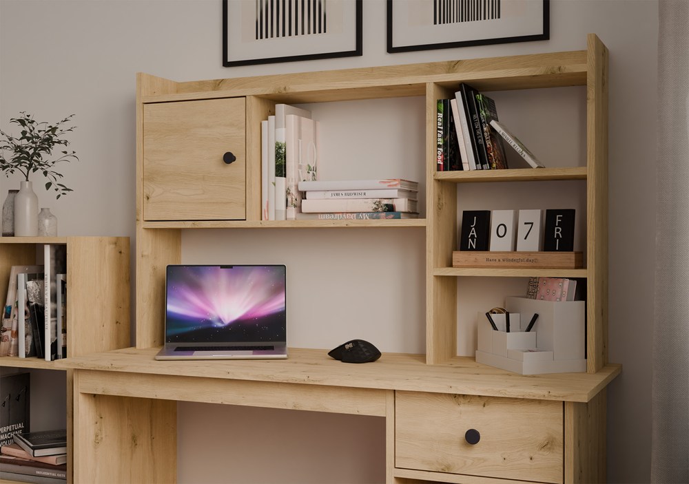 Nadstawka do Biurka 120 cm DĄB ARTISAN 1 Drzwi Regał Na Książki Dokumenty
