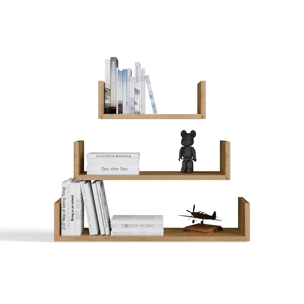 Półka Wisząca MOBI 3P Komplet 3x – Nowoczesne Półki Ścienne DĄB ARTISAN