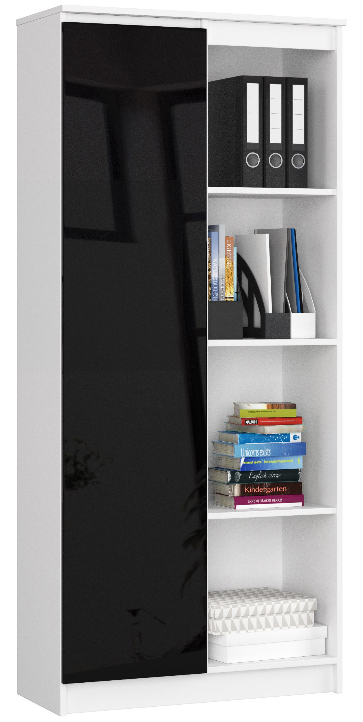 REGAŁ BIUROWY R 80 cm CLP 1 DRZWI 4 PÓŁKI BIAŁY / CZARNY POŁYSK