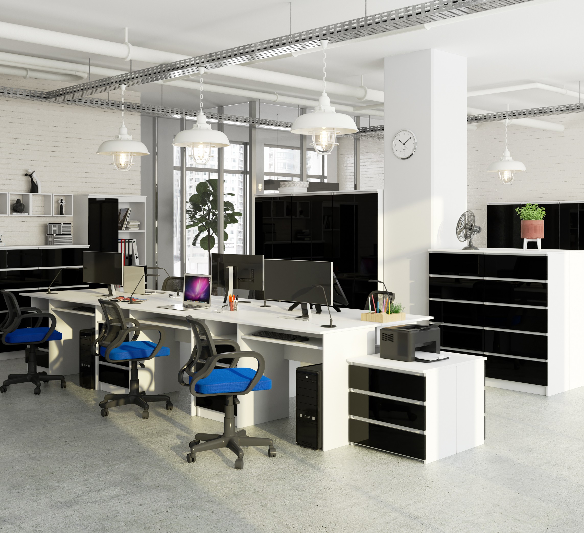 Regał biurowy to mebel, który znajduje zastosowanie nie tylko w biurach, ale także wielu pomieszczeniach mieszkalnych. Wyposażone w szuflady czy półki regały są w stanie pomieścić wiele niezbędnych w danym pomieszczeniu artykułów. Jednym z regałów biurowych dostępnych w ramach przygotowanej przez nas oferty jest prezentowana propozycja. Połączenie czerni oraz bieli bardzo dobrze będzie łączyło się z wszelkimi innymi kolorami i zachwyci przede wszystkim młode osoby, które pragną urządzić swoje cztery kąty w sposób modny oraz nowoczesny.