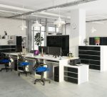 Biały regał biurowy z grafitowymi frontami na wysoki połysk to nowa propozycja, będąca częścią Systemu Mebli CLP. Mebel jest wykonany z płyty pokrytej laminatem firmy Kronospan, wykazującej się odpornością na ścieranie, front natomiast tworzy płyta akrylowa typu MDF o najwyższym standardzie połysku. Wysoka jakość wykonania jest widoczna w każdym detalu – krawędzie wykończono obrzeżem ABS, aby zagwarantować trwałość i odporność na uszkodzenia. W zależności od preferencji, drzwiczki można zamontować po prawej lub lewej stronie. Regał posiada w sumie 8 półek, z których połowa jest zasłonięta, co umożliwia dyskretne przechowywanie osobistych przedmiotów. Półki odsłonięte świetnie nadadzą się do ustawiania książek lub eksponowania kolorowych dodatków. Minimalistyczny styl regału dobrze wpasuje się w zarówno w nowoczesne wnętrze biurowe, jak i domowe, urządzone na wzór skandynawski. Biel nadaje lekkości i elegancji, a błyszczący grafit dodaje charakteru. To propozycja dla osób ceniących proste i nowoczesne formy.