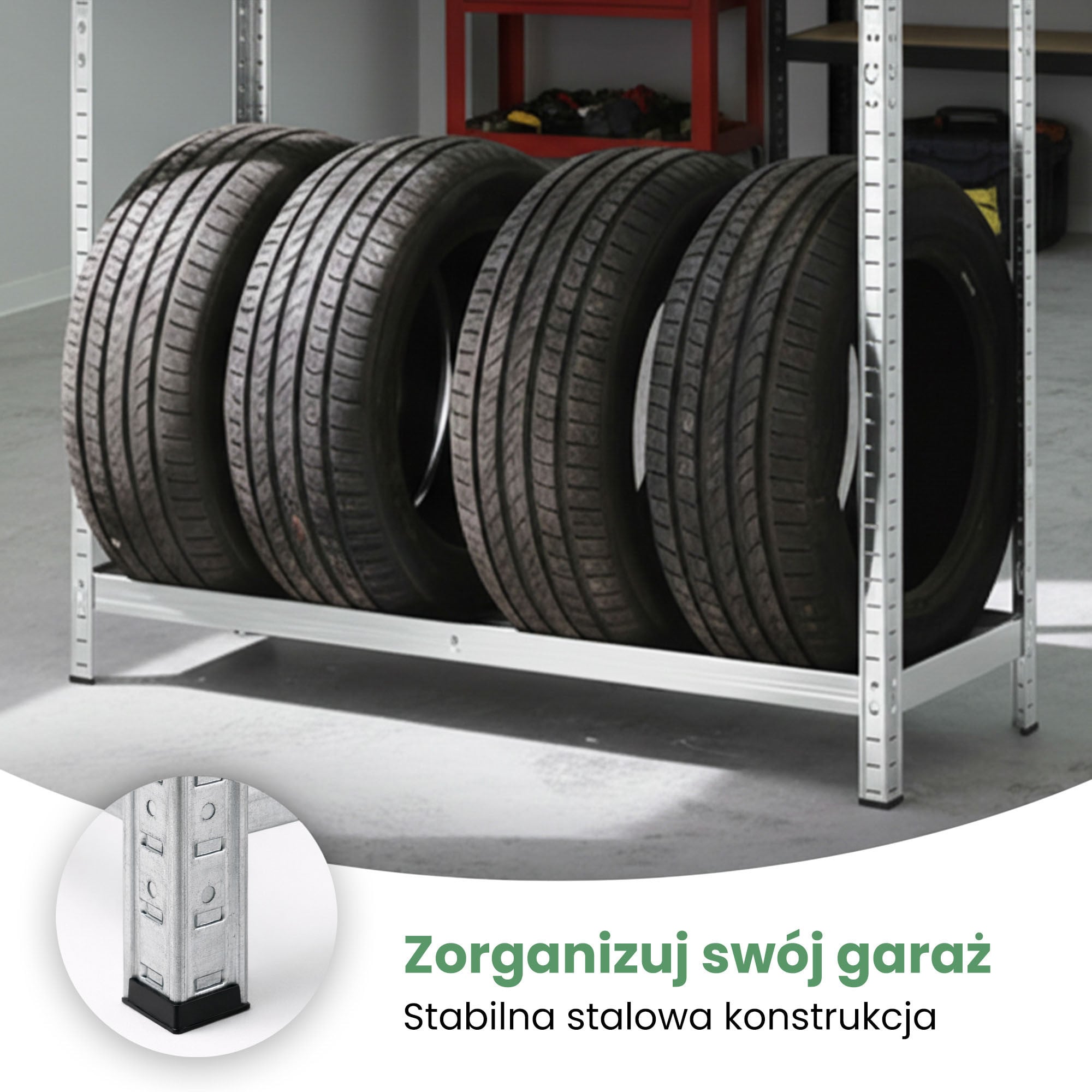 Regał na opony metalowy garażowy 120 cm 3 półki 120x40x180 Galwanizowany Srebrny