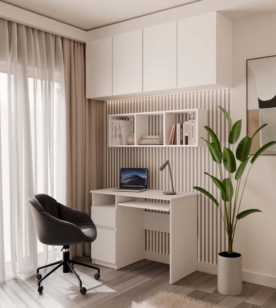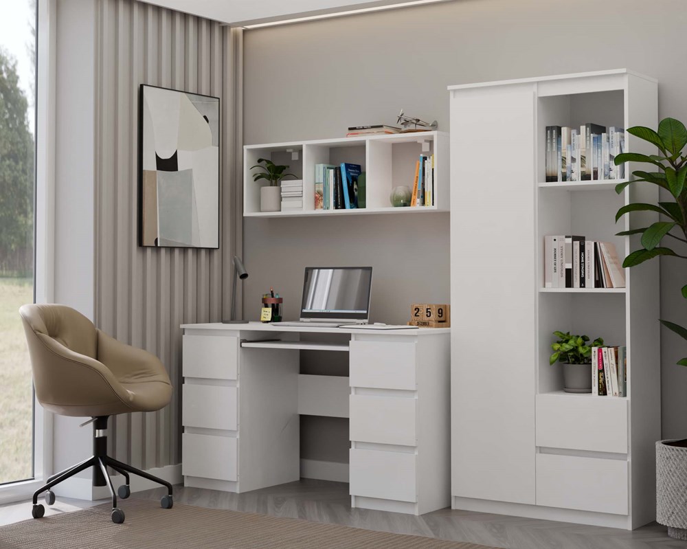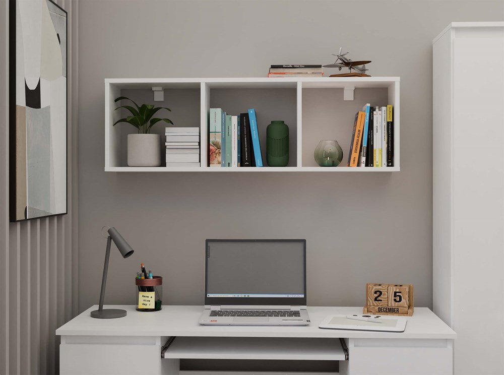 Dzięki trzem pojemnym komorom z łatwością uporządkujesz książki, dokumenty, dekoracje czy akcesoria codziennego użytku. Sprawdzi się zarówno w biurze, jak i w salonie, sypialni czy pokoju ucznia.