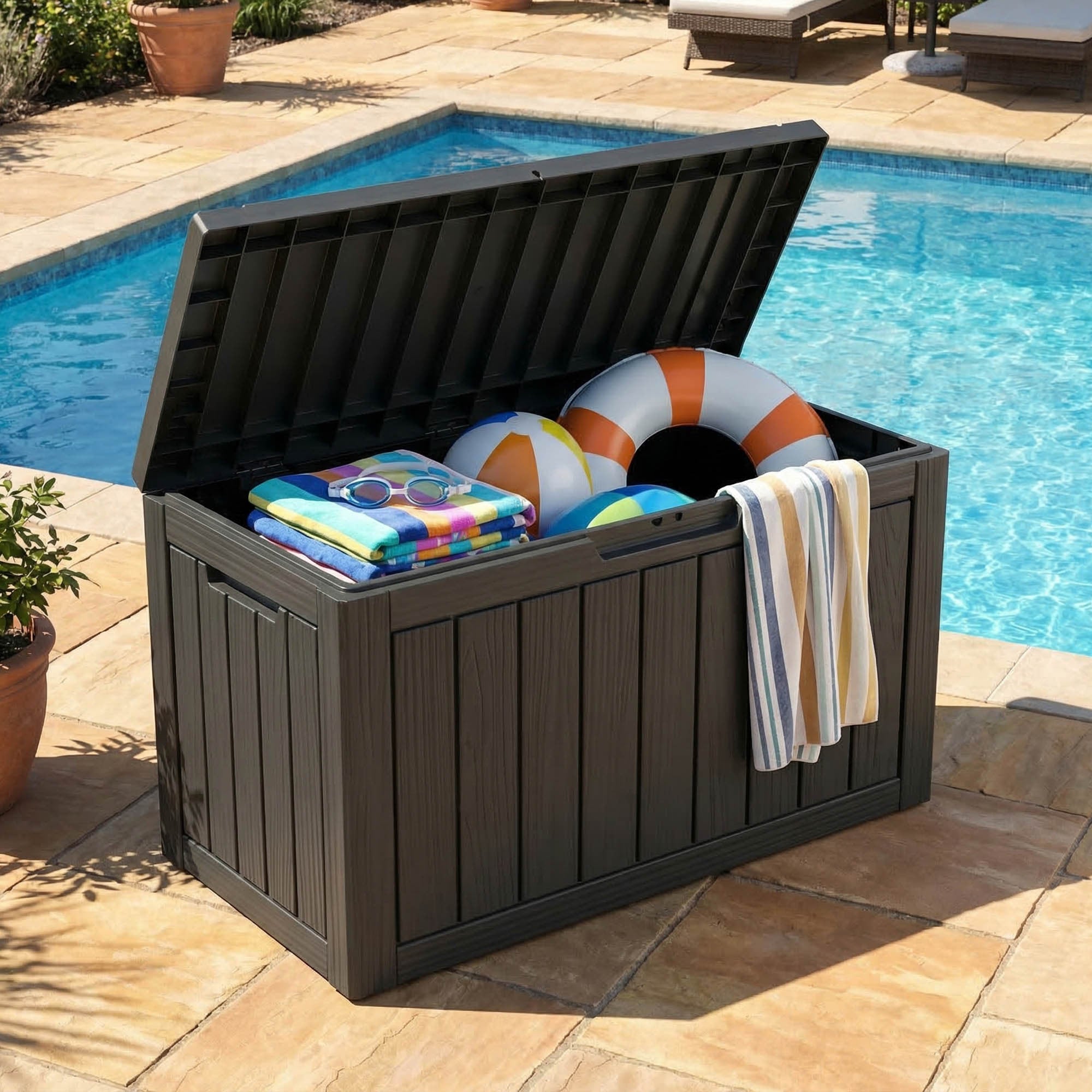 Skrzynie ogrodowe to praktyczne elementy wyposażenia ogrodu, tarasu lub balkonu. Służą do przechowywania różnych akcesoriów, takich jak poduszki ogrodowe, narzędzia czy zabawki. Wykonane są z trwałego polipropylenu, dzięki czemu są odporne na wilgoć, promieniowanie słoneczne oraz inne warunki atmosferyczne. Materiał ten jest lekki, a jednocześnie wytrzymały, co sprawia, że skrzynie są wygodne w użytkowaniu i łatwe w utrzymaniu czystości. Dodatkowo pomagają utrzymać porządek w przestrzeni ogrodowej.