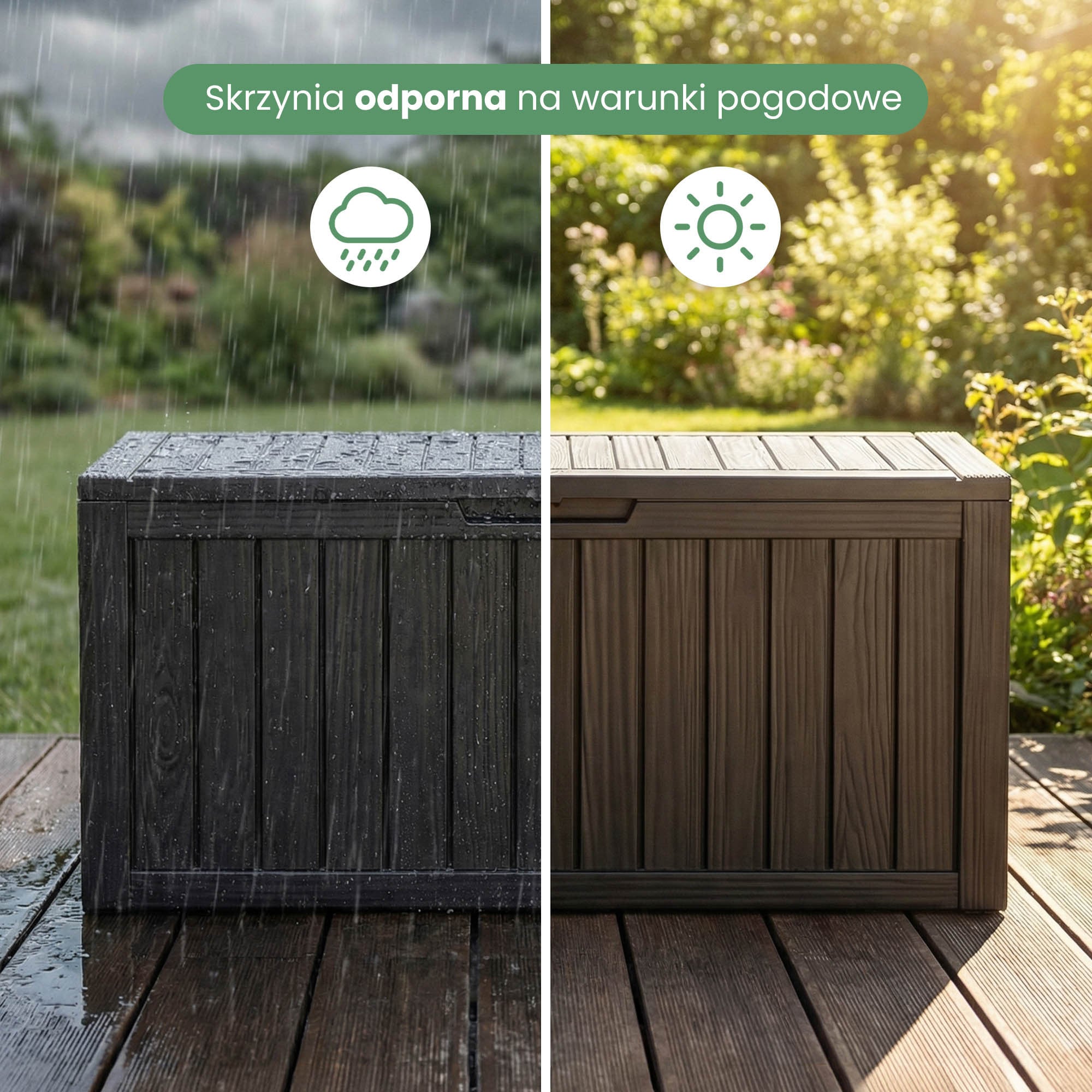 Skrzynie ogrodowe to praktyczne elementy wyposażenia ogrodu, tarasu lub balkonu. Służą do przechowywania różnych akcesoriów, takich jak poduszki ogrodowe, narzędzia czy zabawki. Wykonane są z trwałego polipropylenu, dzięki czemu są odporne na wilgoć, promieniowanie słoneczne oraz inne warunki atmosferyczne. Materiał ten jest lekki, a jednocześnie wytrzymały, co sprawia, że skrzynie są wygodne w użytkowaniu i łatwe w utrzymaniu czystości. Dodatkowo pomagają utrzymać porządek w przestrzeni ogrodowej.