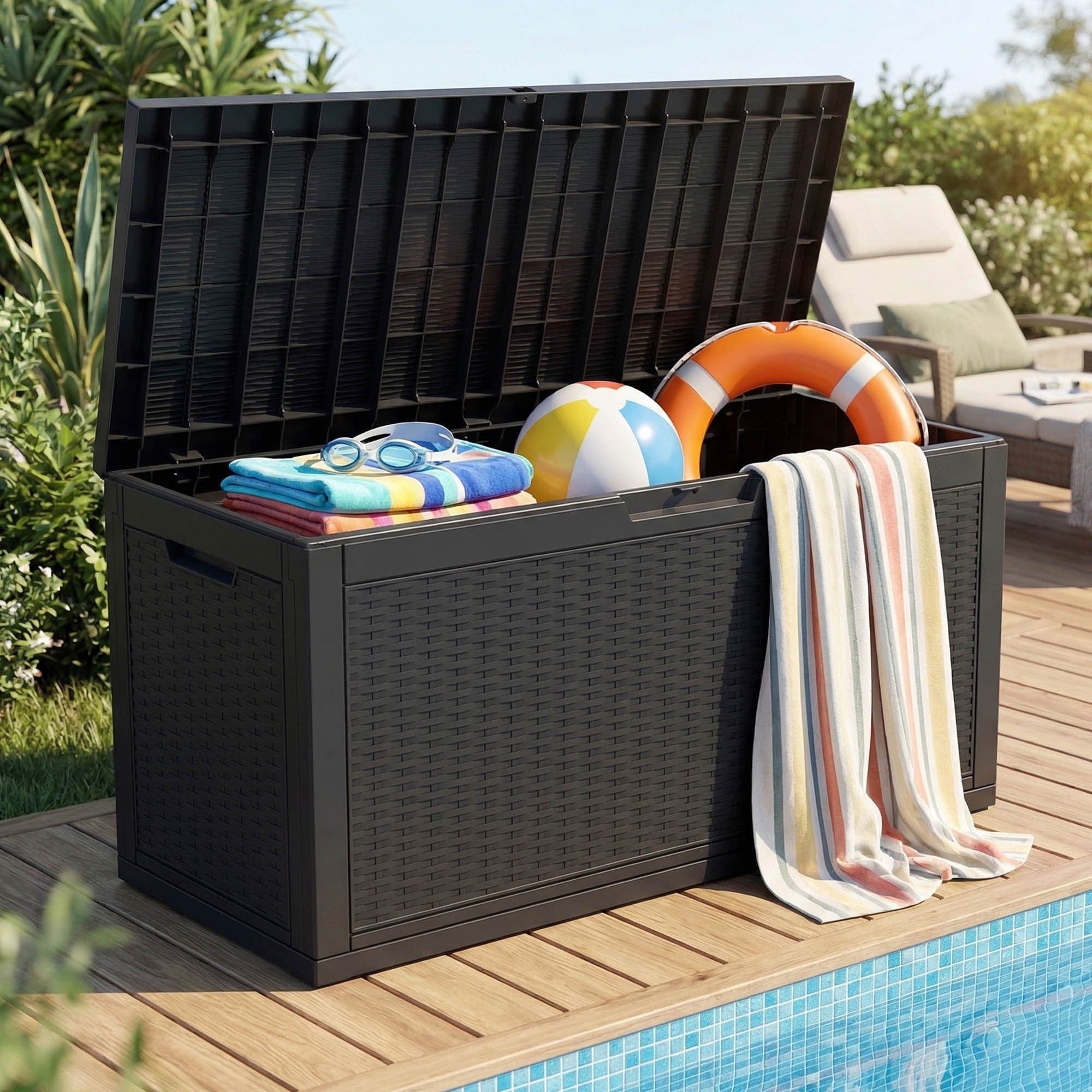 Skrzynia ogrodowa wodoszczelna pojemność 340 litrów Czarna