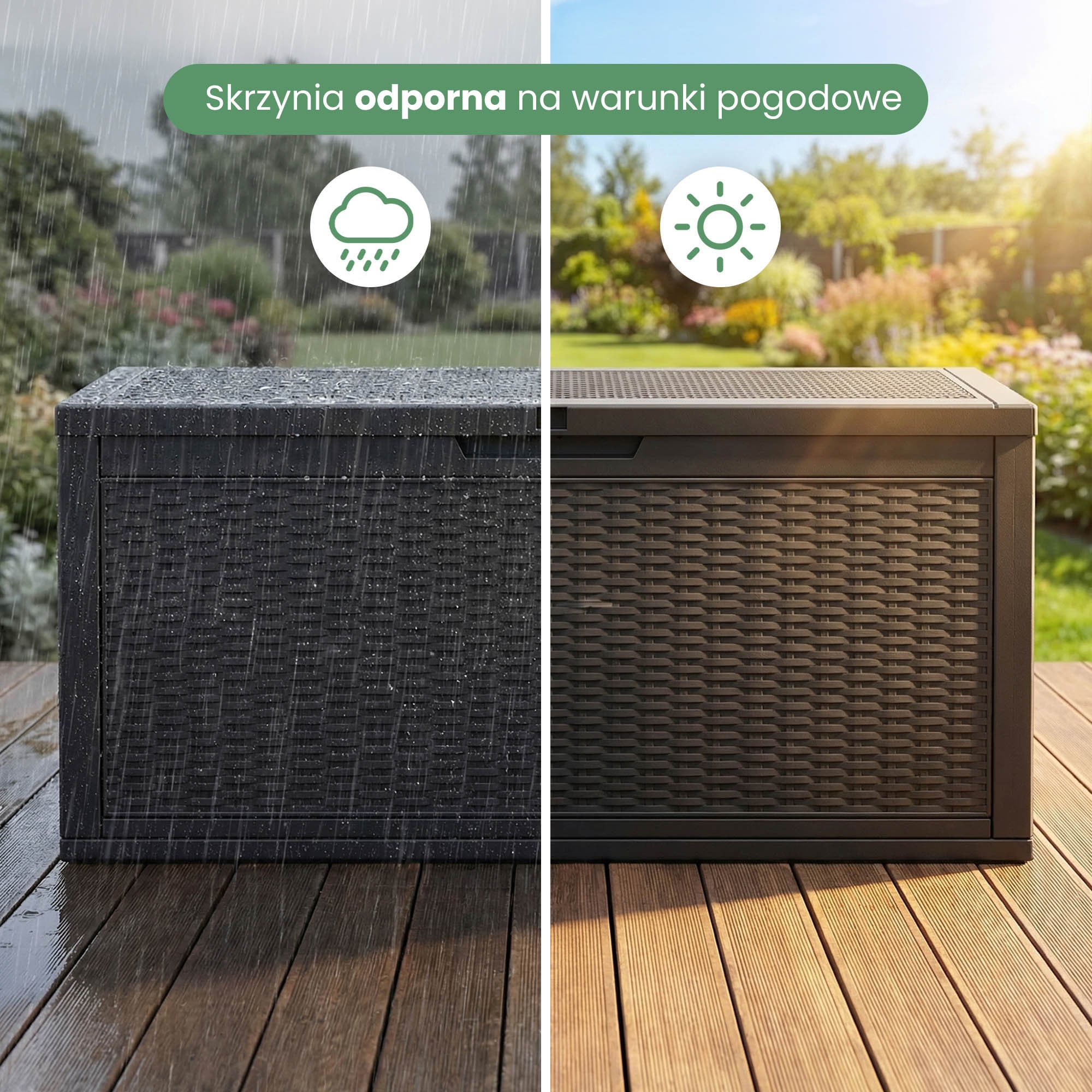 Skrzynie ogrodowe to praktyczne elementy wyposażenia ogrodu, tarasu lub balkonu. Służą do przechowywania różnych akcesoriów, takich jak poduszki ogrodowe, narzędzia czy zabawki. Wykonane są z trwałego polipropylenu, dzięki czemu są odporne na wilgoć, promieniowanie słoneczne oraz inne warunki atmosferyczne. Materiał ten jest lekki, a jednocześnie wytrzymały, co sprawia, że skrzynie są wygodne w użytkowaniu i łatwe w utrzymaniu czystości. Dodatkowo pomagają utrzymać porządek w przestrzeni ogrodowej.