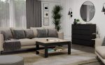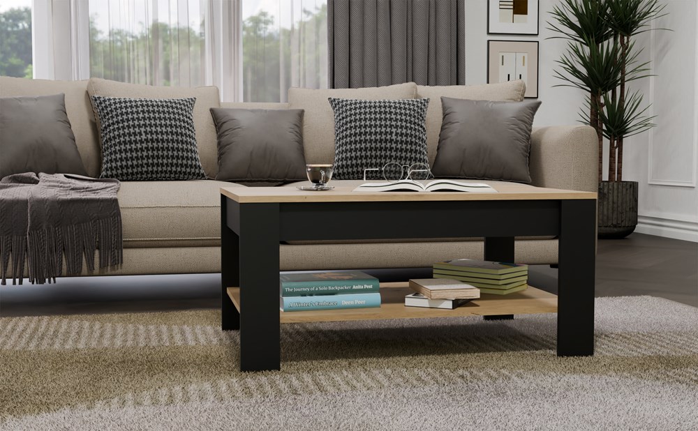 Nowoczesny stolik kawowy OHIO to idealne uzupełnienie salonu, pokoju dziennego czy kącika wypoczynkowego. Połączenie dekoru Dąb Artisan z matową czernią nadaje meblowi nowoczesnego i eleganckiego charakteru. Minimalistyczna bryła oraz funkcjonalna dolna półka sprawiają, że mebel jest nie tylko estetyczny, ale i niezwykle praktyczny w codziennym użytkowaniu.