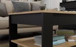 Stolik Kawowy OHIO DĄB ARTISAN CZARNY Ława Półki Do Salonu 93x58x43,5 Cm