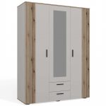SZAFA AVA 150 CM LUSTRO 2 SZUFLADY RYFLOWANY FRONT DĄB EVOKE KASZMIR BEŻ