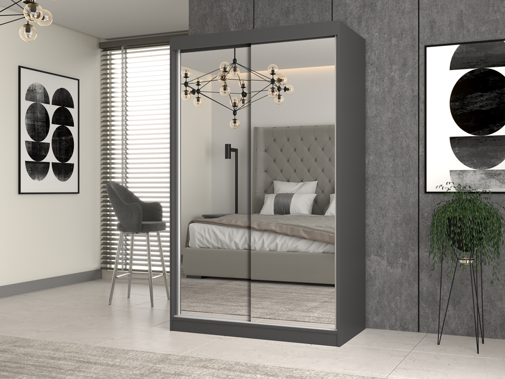 - szafa z przesuwnymi drzwiami na których znajdują się 2 duże lustra