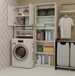 - 4 pojemne półki, w tym 2 schowane za drzwiami – idealne na ręczniki, detergenty i akcesoria.