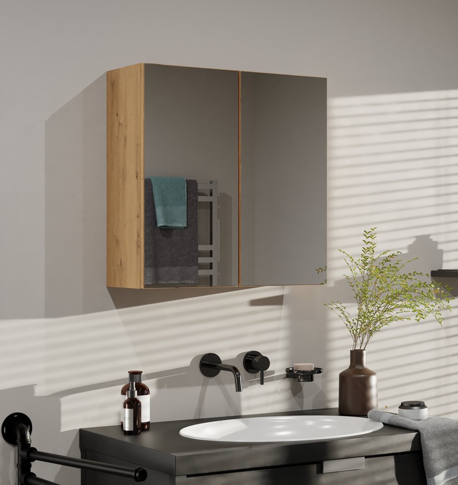 Szafka Łazienkowa Wisząca Z Lustrem Nad Umywalkę POLA 2DL 2 Drzwi DĄB ARTISAN