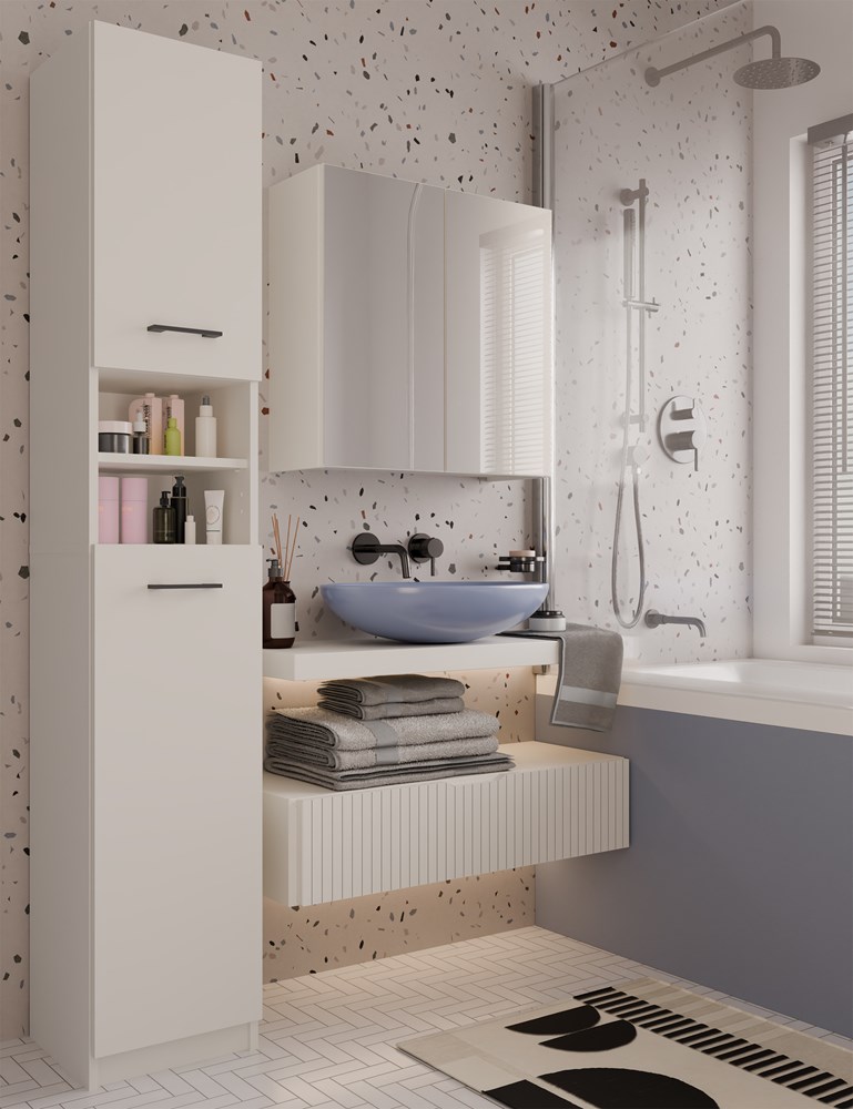 Wisząca szafka łazienkowa nad umywalkę to idealne rozwiązanie dla małych powierzchni aby jeszcze lepiej zagospodarować Twoją łazienkę. Przestronna szafka łazienkowa na ręczniki, kosmetyki, środki czystości i inne akcesoria łazienkowe.