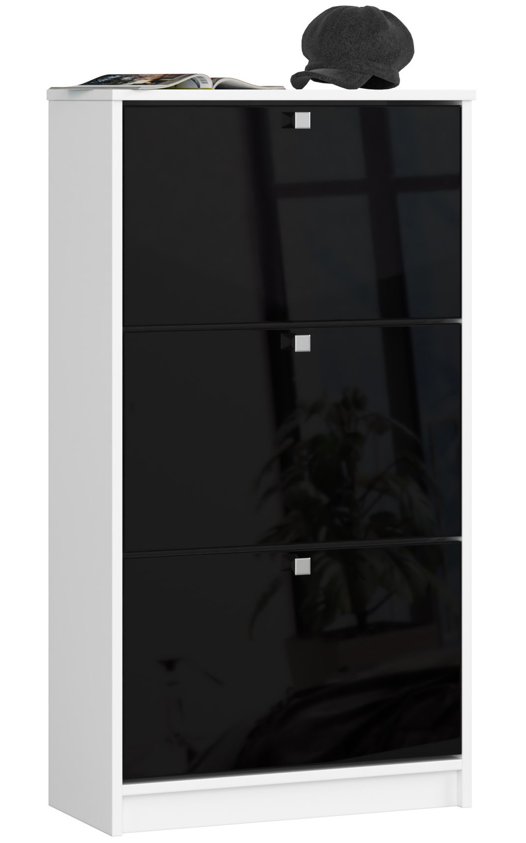 SZAFKA NA BUTY 3 UCHYLNE DRZWICZKI 60 cm BIAŁA / CZARNY POŁYSK