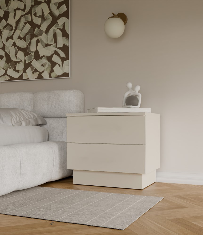 Szafka Nocna AMBER 2S Stolik Nocny 2 Szuflady Do Sypialni KASZMIR Beż