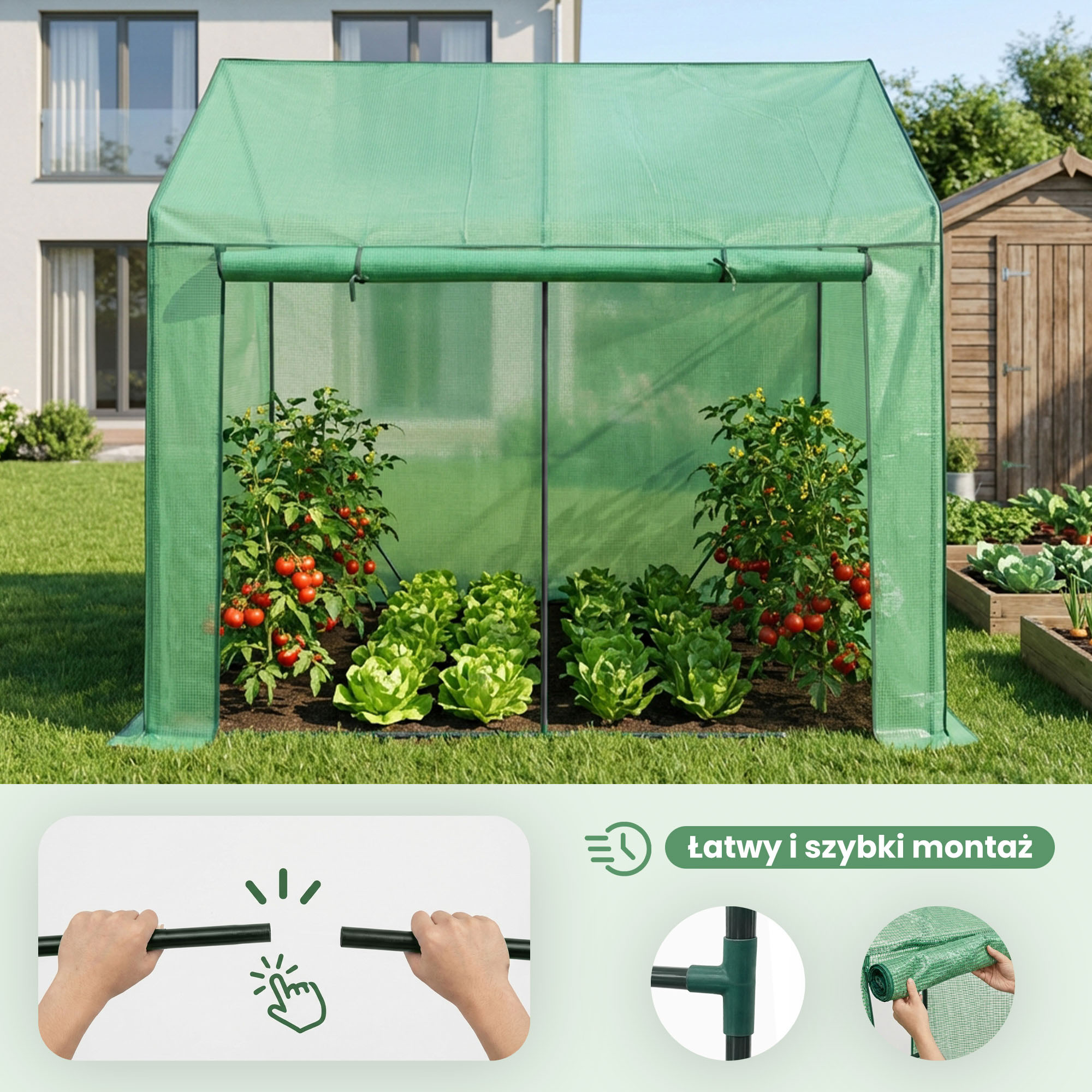 Szklarnia ogrodowa foliowa domek 1 drzwi 2 okna Zielona 202x80x170 cm