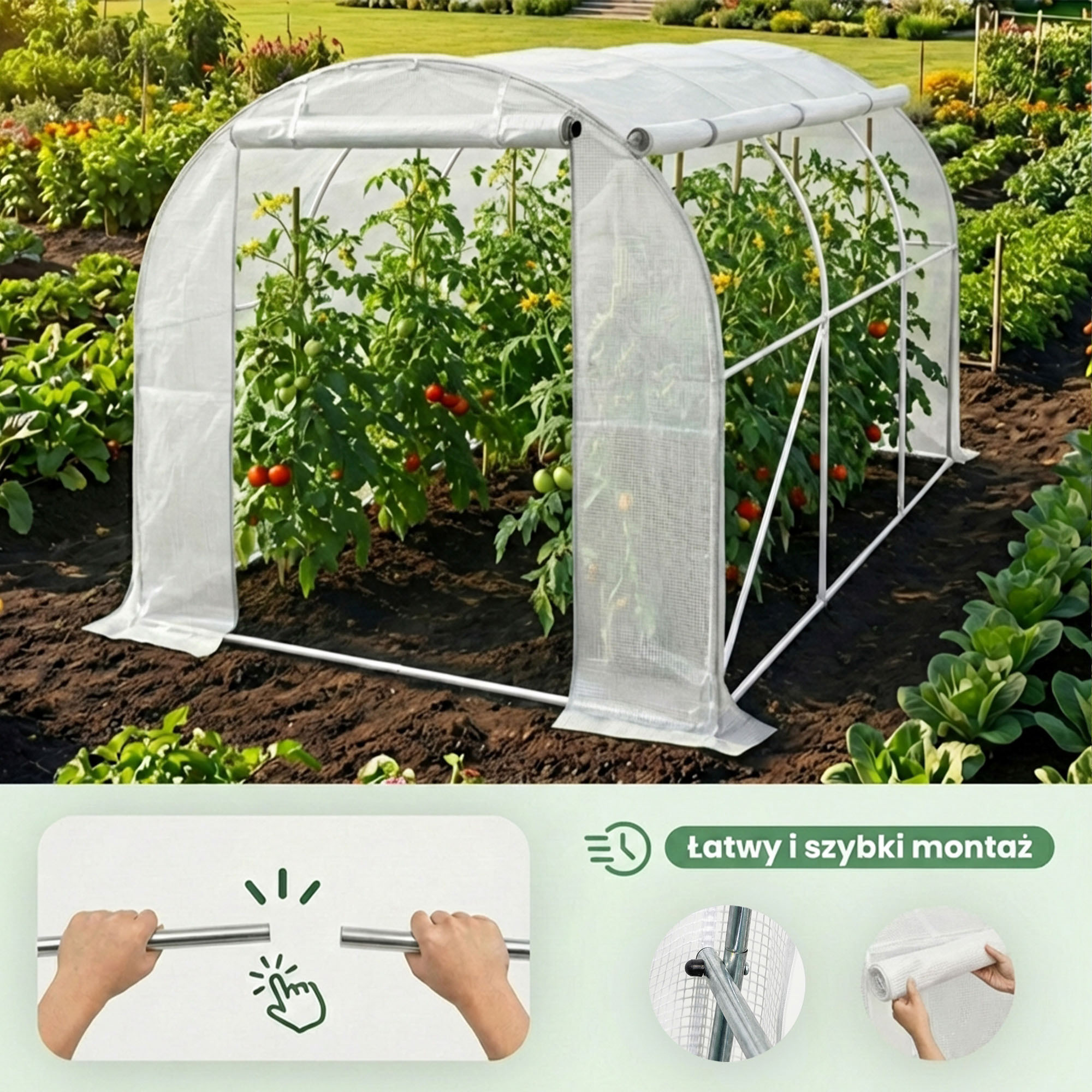 Ogrodowa szklarnia foliowa to praktyczne rozwiązanie dla osób, które chcą wydłużyć sezon upraw i zapewnić roślinom optymalne warunki wzrostu. Konstrukcja pokryta wytrzymałą folią chroni przed wiatrem, chłodem oraz nadmiernymi opadami, jednocześnie przepuszczając odpowiednią ilość światła. Tworzy stabilny mikroklimat sprzyjający kiełkowaniu, wzrostowi i dojrzewaniu warzyw, owoców oraz roślin ozdobnych. To wygodny sposób na zdrowsze, własnoręcznie uprawiane plony prosto z ogrodu.