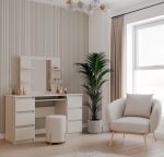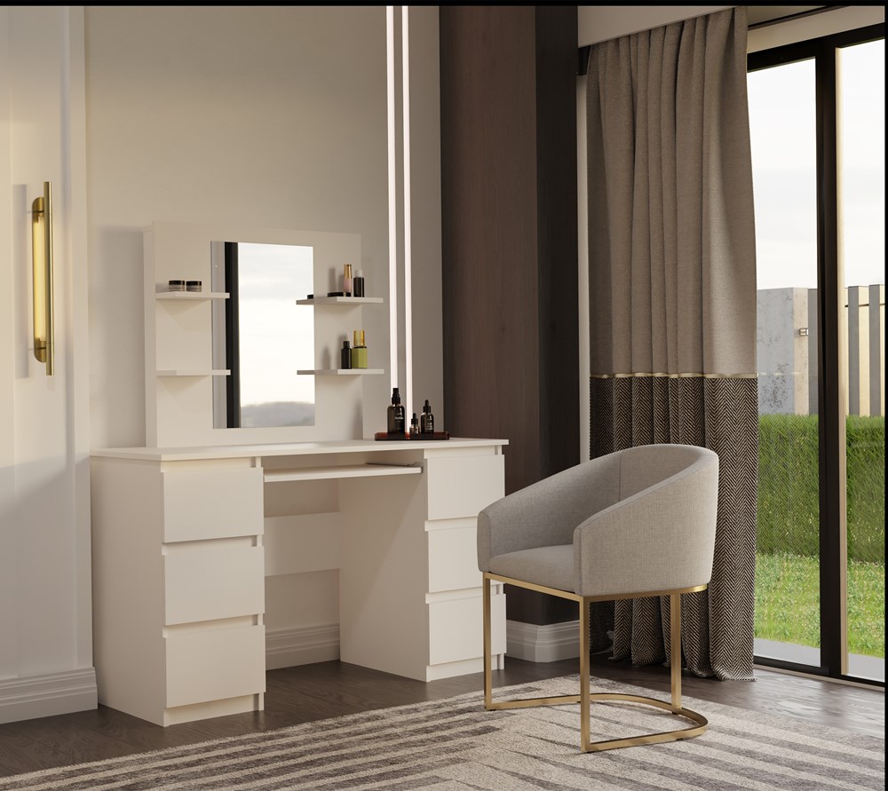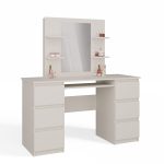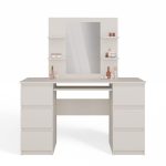 Toaletka z lustrem i 4 półkami to idealny mebel dla osób, które cenią sobie komfort oraz piękno swojego otoczenia. Przemyślana konstrukcja pozwala na wygodne przechowywanie kosmetyków i biżuterii, a także może funkcjonować jako praktyczne biurko.