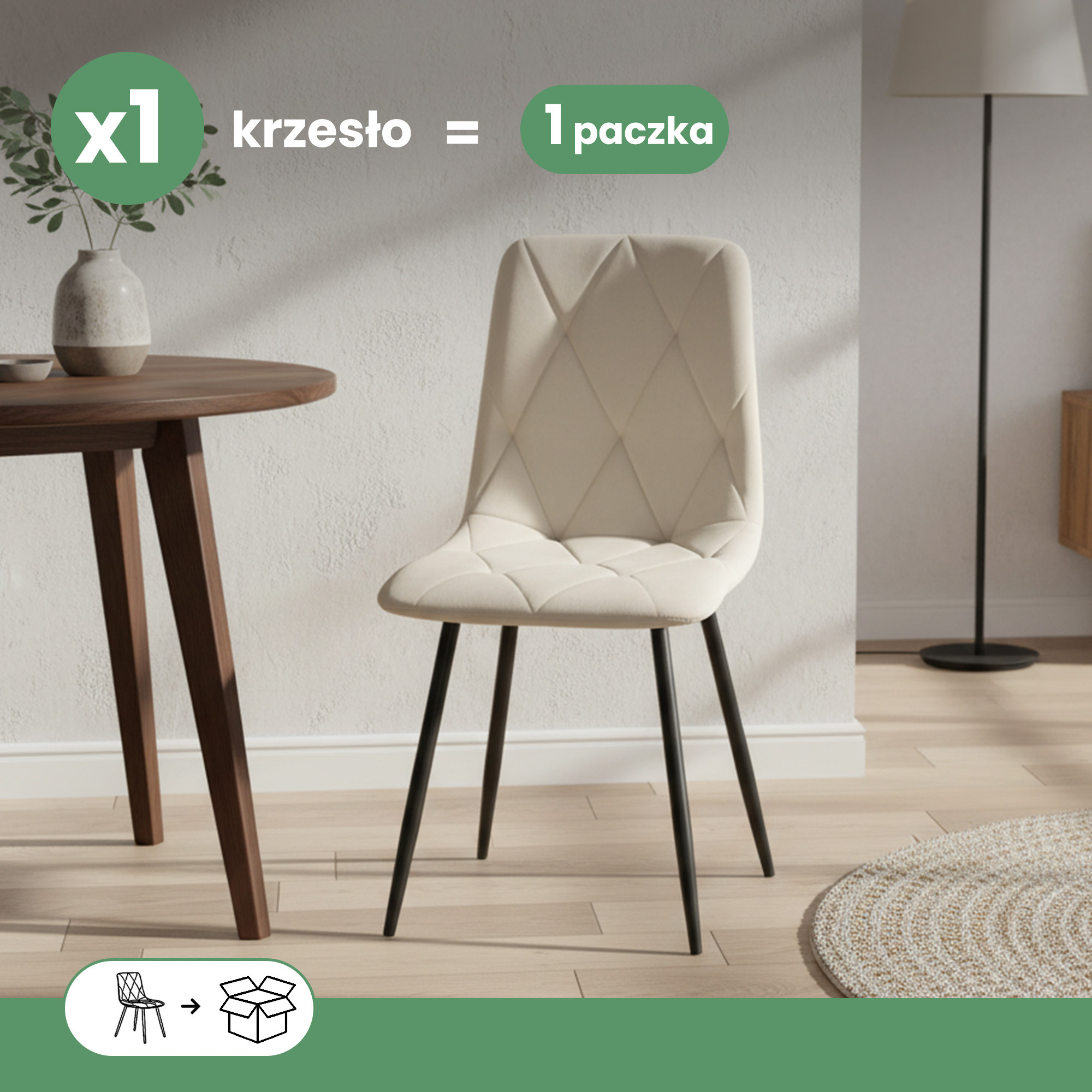 Welurowe krzesło tapicerowane pikowane Beżowe MILO Czarne nogi