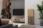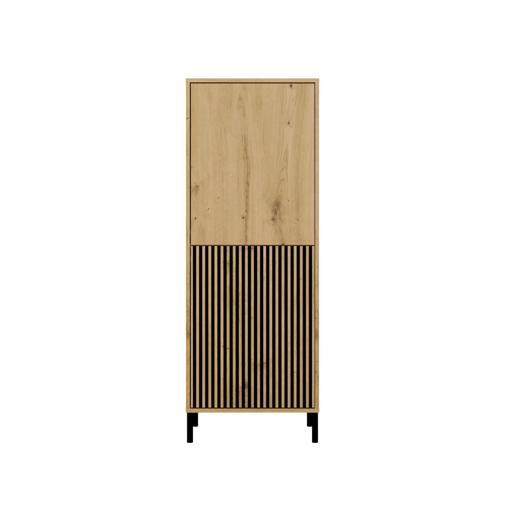 Witryna KAMARO 2DK SLIM/GŁADKI DĄB ARTISAN to połączenie estetyki i funkcjonalności, które doskonale odnajdzie się w salonie, pokoju gościnnym, sypialni czy gabinecie. Połączenie drzwi z gładkim frontem oraz drzwi z ryflowanym frontem przypominającym lamele dodaje charakteru, a system TIP-ON pozwala na wygodne użytkowanie bez uchwytów. Mebel zapewnia sporo miejsca do przechowywania, jednocześnie stanowiąc stylowy akcent w nowoczesnym wnętrzu.