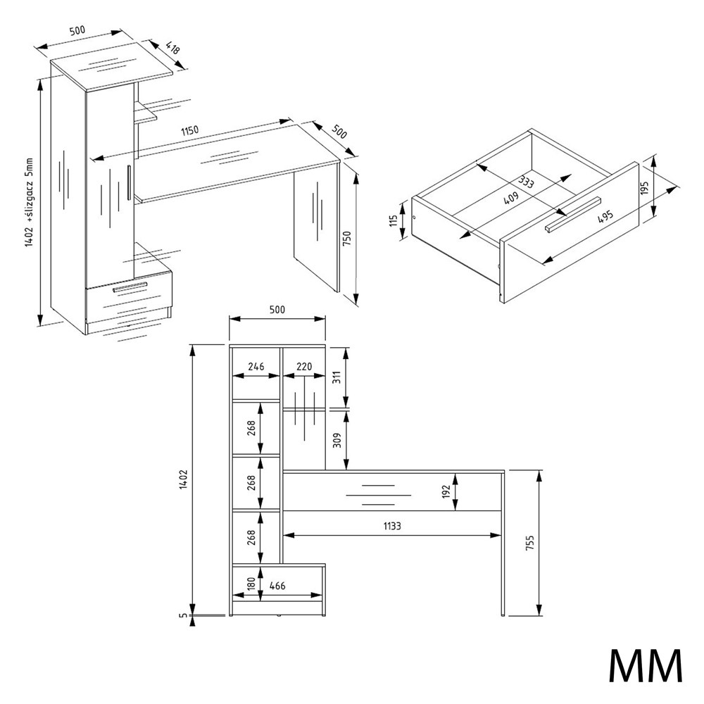 Konstrukcja: Biurko z wysokim regałem i szufladą