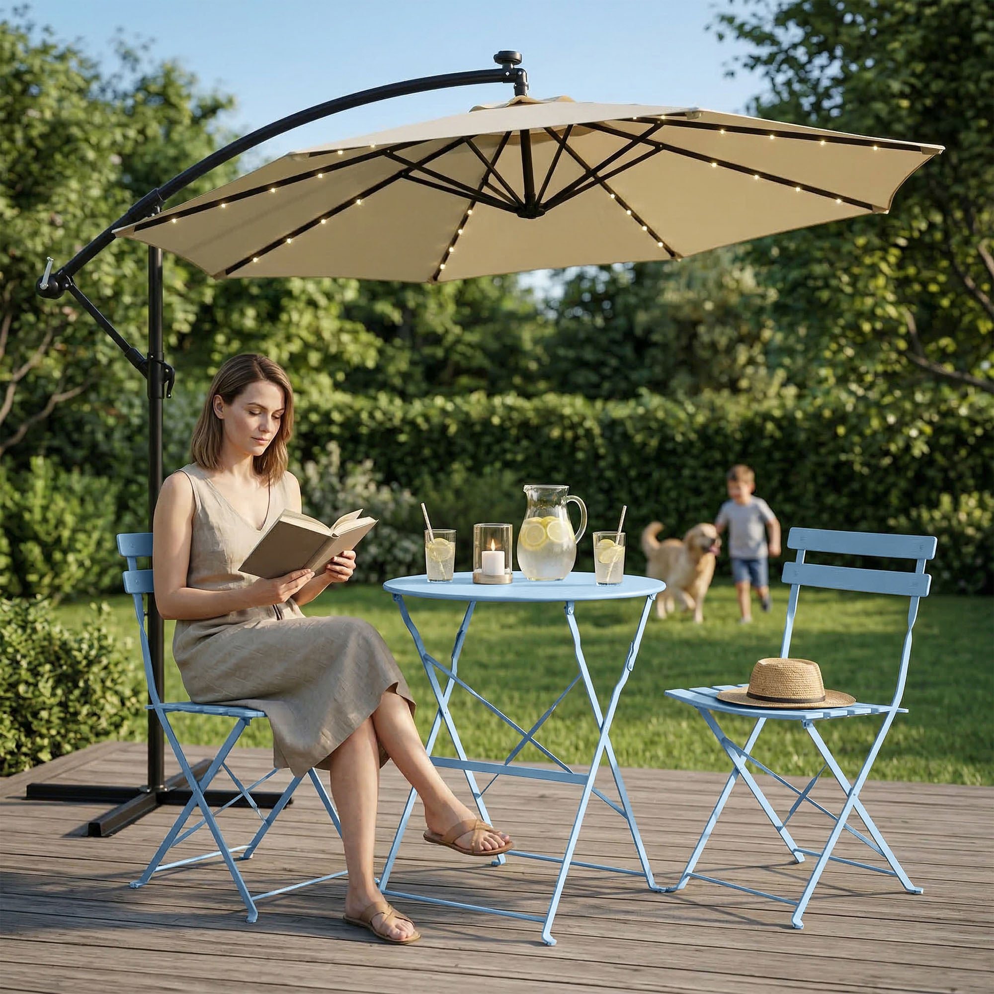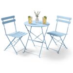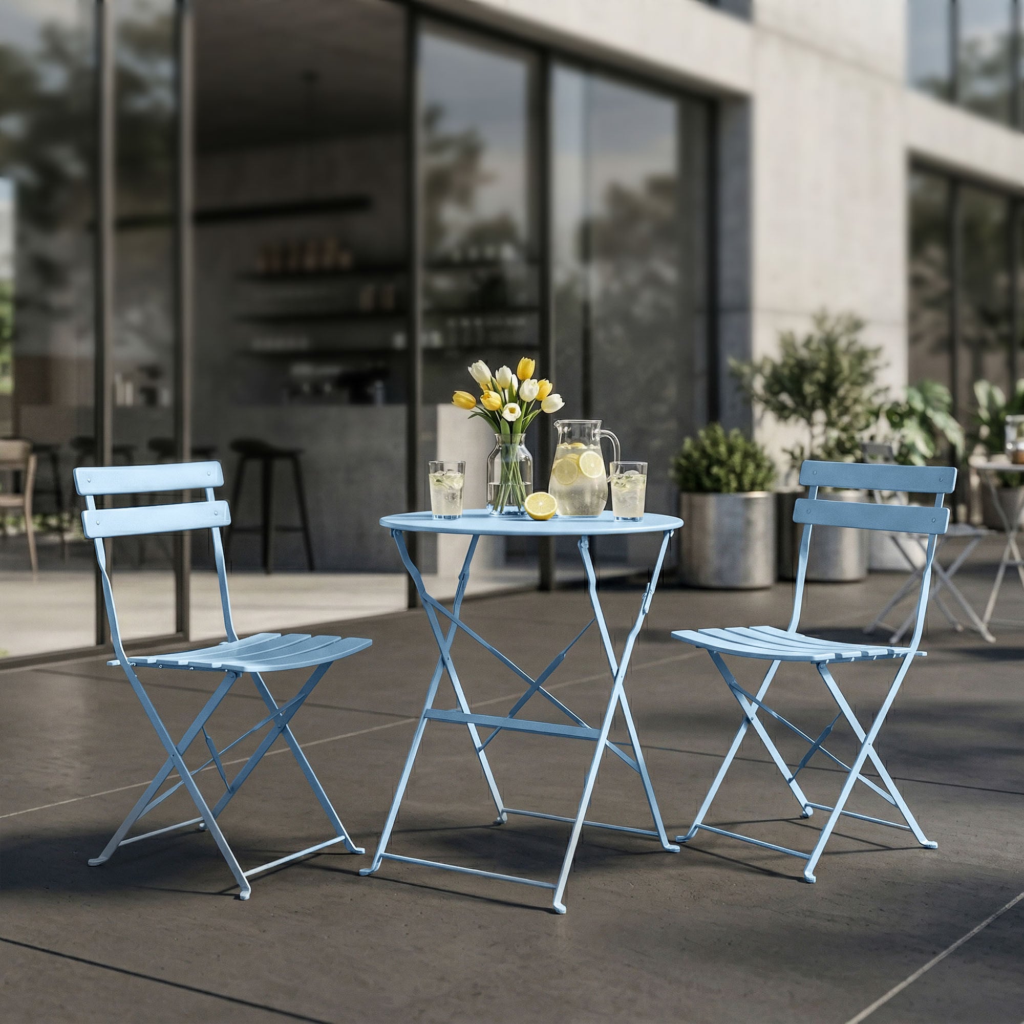 Zestaw mebli balkonowych ORION to doskonała propozycja dla osób poszukujących wygody i funkcjonalności podczas relaksu na świeżym powietrzu. Składający się z dwóch eleganckich krzeseł i okrągłego stołu zestaw zachwyca niebieskim kolorem oraz solidną metalową konstrukcją, zapewniającą trwałość i odporność na warunki atmosferyczne.